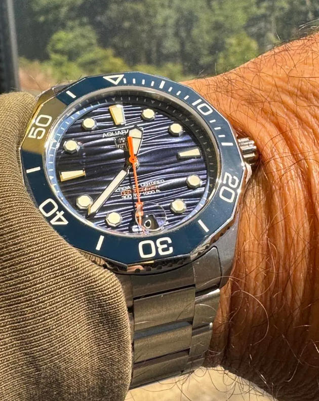 The model I wore (reference wbp5111.ba0013) with blue dial and steel bracelet was released in 2024. It retails for $4,350, according to the top TAG Heuer copy watches website.